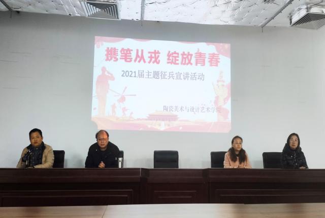 (本网讯:图|曾子晴、刘怡心/文|周婧)为了扎实做好2021年征兵宣讲工作,激发毕业生参军报国热情,发动更多优秀大学生踊跃参军入伍。艺术学院于12月16日在艺术楼二楼会议室举办“投笔从戎绽放青春”主题征兵宣讲活动。活动由学生工作科科长兼团委书记胡文毅主持。