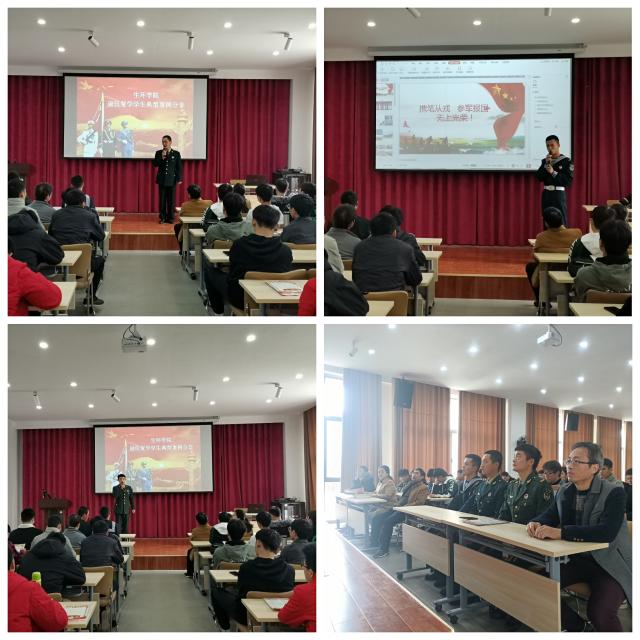 (本网讯:文|徐夏怡/图|万涛)为推进国防和军队现代化建设,响应学校开展的大学生征兵工作,鼓励在校生积极参军入伍。12月1日,生环学院在学院一楼报告厅举行2021届毕业生征兵宣传启动仪式,党总支书记韩文华,副书记李建英,学工科科长万涛,全体辅导员和2021届毕业生参加活动。