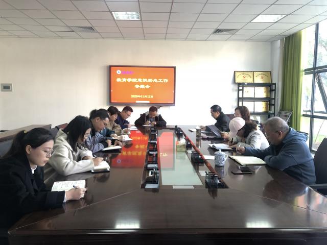 (本网讯:李婷婷)为进一步统一思想,强化责任,安排部署教育学院今后一段时期的意识形态工作。11月12日,教育学院意识形态工作专题会在学院党员活动室召开。会议由党总支书记黄玉梅主持。