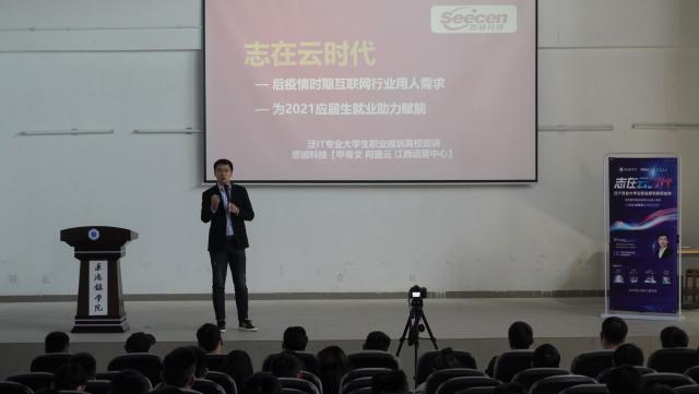 (本网讯:文|陈欣/图|李婉婷、何千惠、胡晶凤)为深入了解后疫情时期互联网行业用人需求,助力毕业生就业。11月13日下午,江西思诚科技有限公司高级项目经理、资深职业规划专家王寅受邀在我校外语楼报告厅作“志在云时代”主题讲座,讲座由信工学院虞文老师主持。