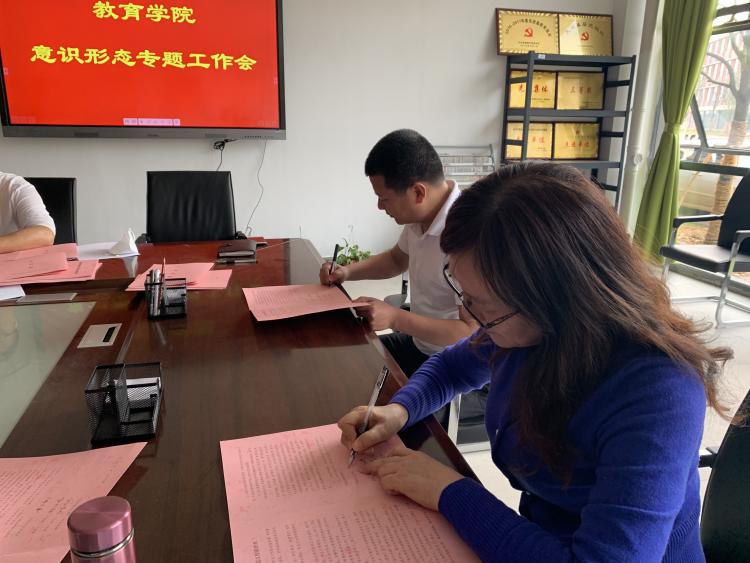 (本网讯:文|罗茜/图|李婷婷)4月30日下午,教育学院意识形态专题工作会在学院党员会议室召开,传达和学习学校意识形态工作会议和相关文件精神。教育学院党总支负责人黄玉梅主持会议。