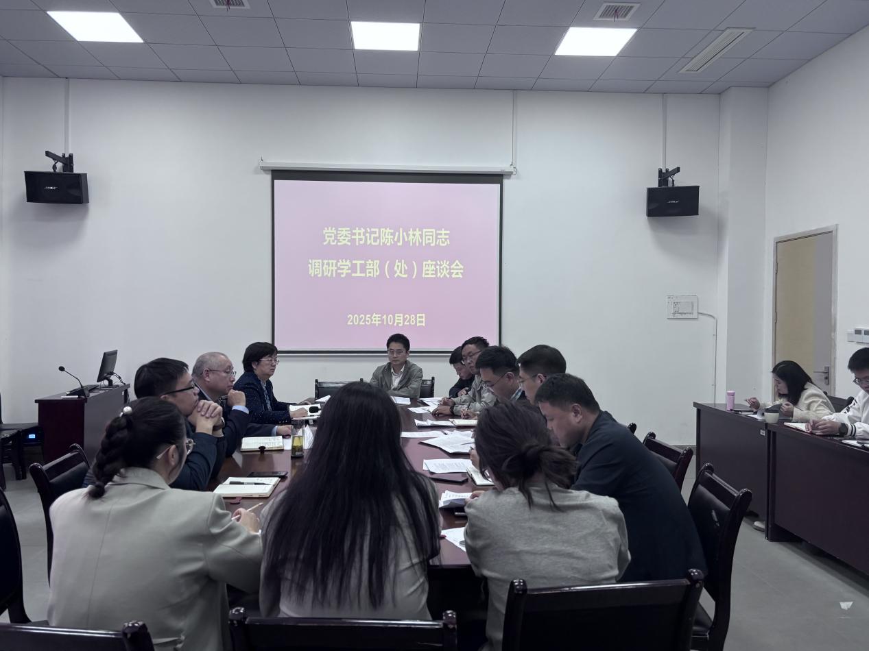 陈小林认真听取汇报,对学工处近年来的各项工作成效给予充分肯定。他指出,学生工作是学校人才培养的重要组成部分,事关学生成长成才和校园的和谐稳定。他要求要始终坚持以生为本的工作理念,巩固现有成果,持续提升工作水平,深化“一站式”学生社区内涵建设,将其打造成育人前沿阵地;要织密筑牢心理健康防护网,守护学生身心健康;要多措并举推动毕业生更充分、更高质量就业;建设一支高素质、专业化的辅导员队伍,为学生工作提供坚实保障。他希望全体学工人员再接再厉,为推动学校事业高质量发展贡献更大力量。