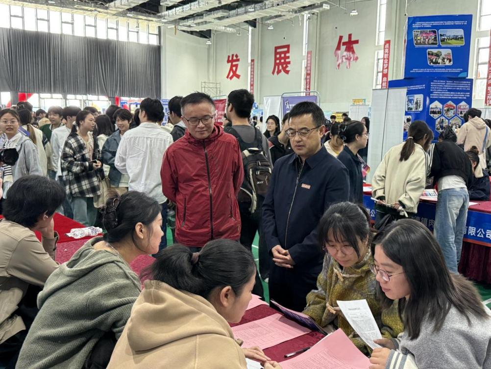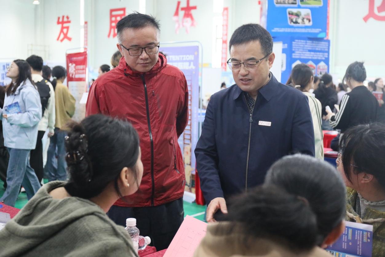 (本网讯:外国语学院)为进一步贯彻党中央、国务院关于高校毕业生就业工作的决策部署,落实教育部和省教育厅“访企拓岗促就业”专项行动工作部署,10月31日,校党委委员、纪委书记罗少韬在学校双选会实地了解企业用人需求,现场开展访企拓岗促就业专项行动,加强供需对接,深化校企合作,切实解决学生就业难题。外国语学院党委书记程立新、副书记黄华等陪同。