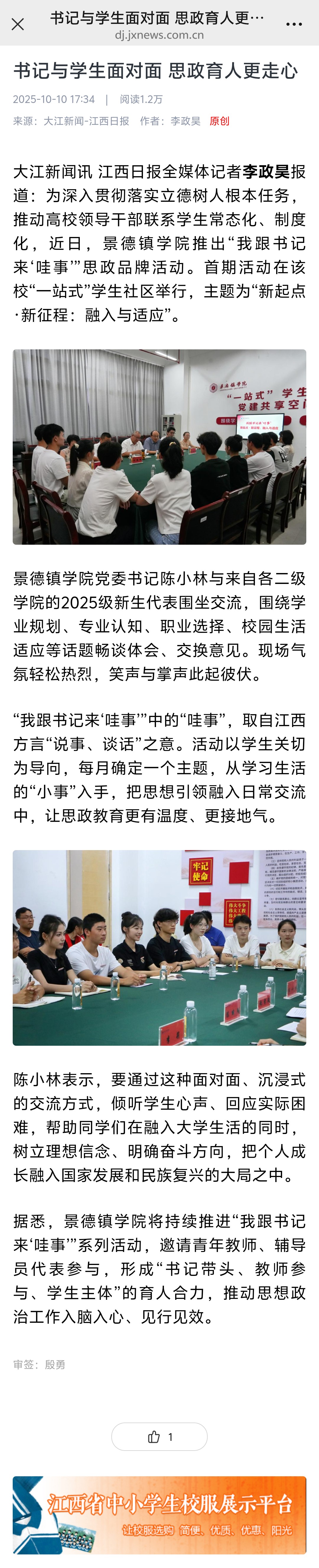 大江新闻:景德镇学院党委书记与学生面对面 思政育人更走心