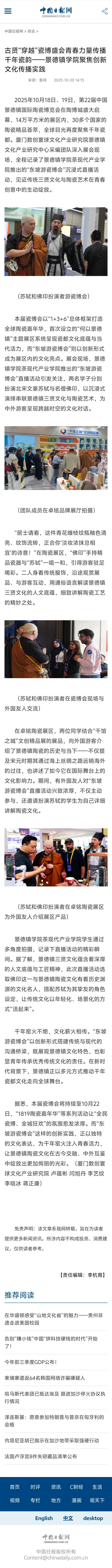 中国日报网:古贤“穿越”瓷博盛会青春力量传播千年瓷韵——景德镇学院聚焦创新文化传播实践