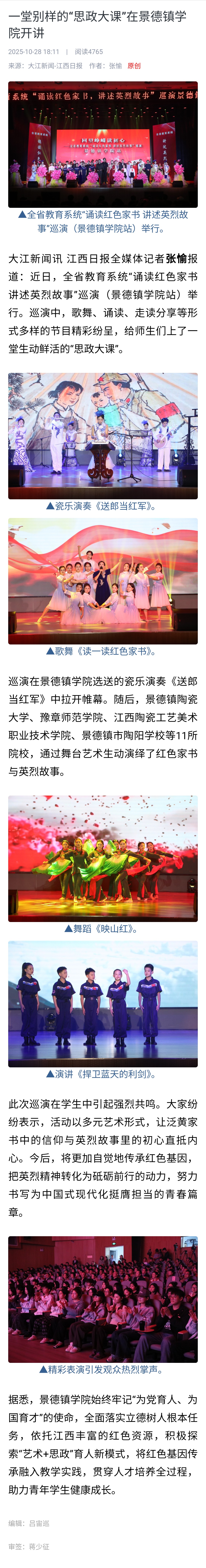 大江新闻:景德镇学院开讲一堂别样的“思政大课”
