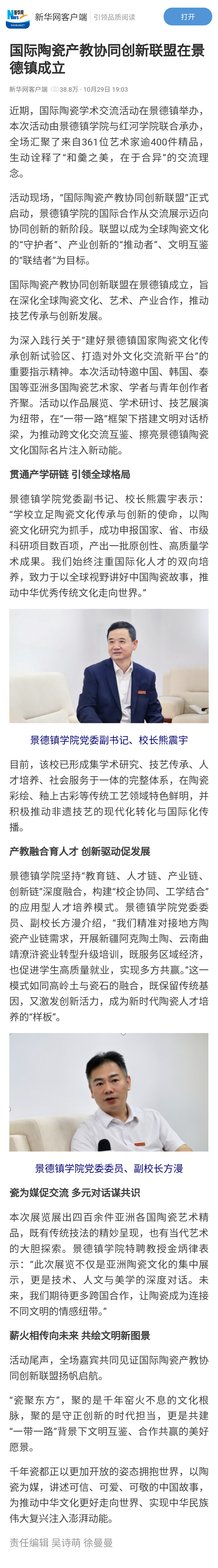 新华网:景德镇学院牵头成立国际陶瓷产教协同创新联盟