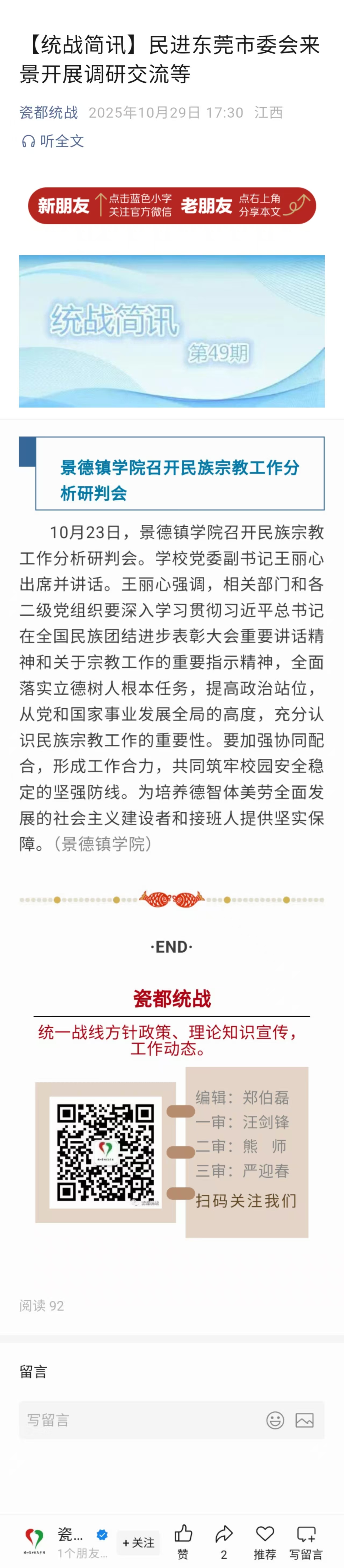 瓷都统战:景德镇学院召开民族宗教工作分析研判会