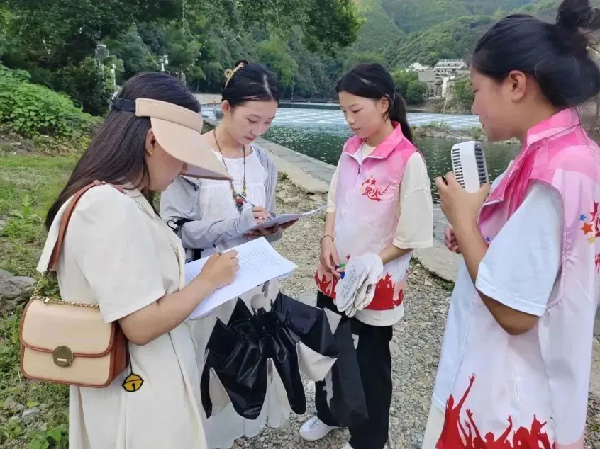 队员们在瑶里古镇景区发放调查问卷 李玉维摄