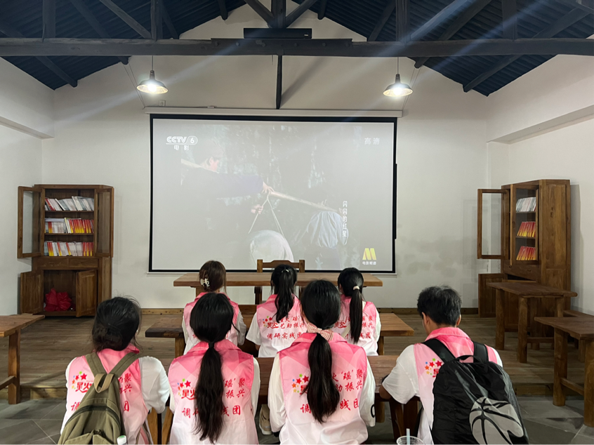 队员们在红色学堂观看《闪闪的红星》 黄智禹摄