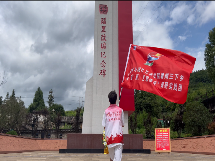 作为《闪闪的红星》拍摄地,瑶里不仅有优美的自然风光,更有厚重的红色文化底蕴。在抗日战争时期,陈毅同志曾在这里指导瑶里改编,在中国革命史上具有极其重要的意义。走进瑶里,“三下乡”调研实践团队的第一站来到了瑶里改编纪念碑,随后参观了新四军瑶里改编纪念馆、陈毅旧居等红色遗迹。一个个感人的故事,一张张黑白的照片,一件件珍贵的文物,让队员们仿佛回到了那个战火纷飞的年代,对瑶里改编精神也有了更深刻的体会。队员们站在瑶里改编纪念碑前重温入团誓词,走进红色学堂观看经典革命电影,励志为服务瑶里乡村振兴贡献青春力量。