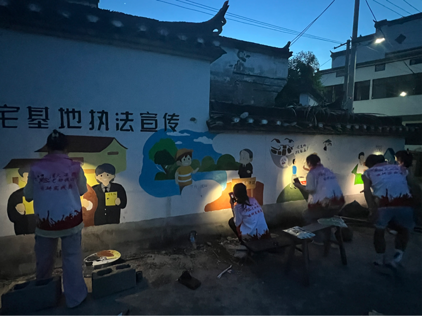 在“三下乡”活动的最后两天,队员们不惧高温酷暑,前往瑶里镇寺前村、乡下蚂蚁乐园开展志愿活动。他们下乡村,在当地政府工作人员的指导下宣传“宅改”知识,绘制“宅改”墙绘。他们入校园,给小学生们带来了一场生动的“七一”主题艺术思政课。他们进企业,帮助当地新型文旅企业录制宣传片。孩子们脸上洋溢的笑容、村民们举起的大拇指、企业主由衷的赞赏,都让“三下乡”调研实践团队的队员们感到振奋和鼓舞,同时也为此次“三下乡”活动画上了完美的句号。