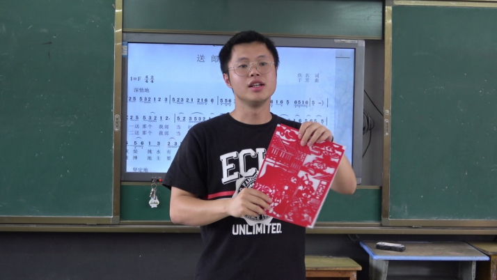 “一送那个我郎当红军哟,家中那个事务你放心哟……”这首经久传唱的革命歌曲音调优美,既体现了军属的革命意识,还展示了革命必胜的信念。在实践活动中,团队成员耐心教授小朋友们学唱《送郎当红军》。在熟悉的旋律中,大家情绪激昂,磅礴之气唱响了党史的岁月掠影,宏阔之律谱写了新时代的华章,稚嫩之声展望着国家的美好未来。