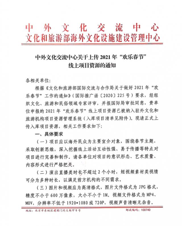 近日,由中外文化交流中心、文化和旅游部海外文化设施建设管理中心共同主办的2021年“欢乐春节”线上项目资源评选结果出炉,我校选送的“青花瓷乐演奏”节目入选驻外文化和旅游机构项目资源管理系统项目。 (...