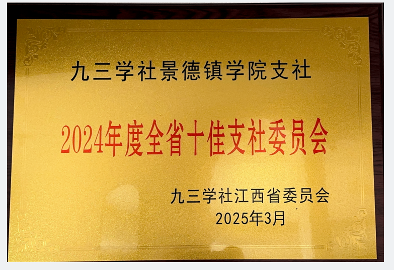 (本网讯:石峰)4月1日,九三学社江西省第九届委员会第四次全体会议在南昌召开。会议表彰了2024年度综合履职评价先进集体、全省十佳支社、优秀专门(工作)委员会、参政议政工作先进个人。九三学社景德镇学院支社被评为2024年度全省十佳支社委员会。...