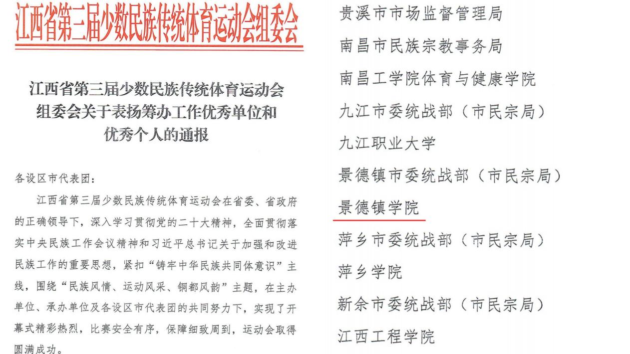 (本网讯:石峰)近日,江西省第三届少数民族传统体育运动会组委会通报了筹办优秀单位的名单,我校获得“江西省第三届少数民族传统体育运动会筹办优秀单位”。 获奖通报 石峰供图 此次运动会紧扣“...