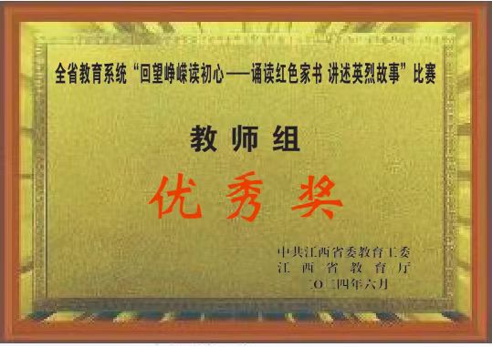 (本网讯;郑嘉辉)近日,由中共江西省委教育工委、江西省教育厅主办的2024年全省教育系统“回望峥嵘读初心——诵读红色家书,讲述英烈故事”决赛在南昌师范学院昌北校区逸夫艺术楼举办。我校马克思主义学院江如歌老师及其团队成员章娉、...