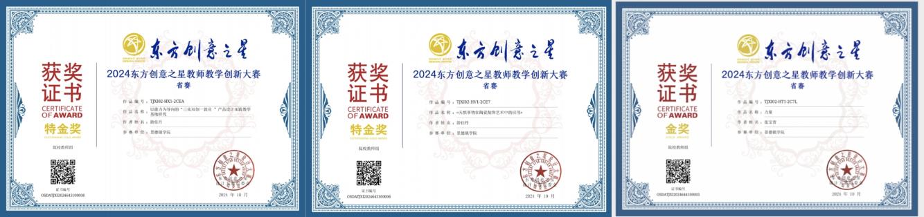 (本网讯:王锦瑶)近日,由工业和信息化部国际经济技术合作中心批复举办的第五届东方创意之星教师教学创新大赛全国总决赛获奖名单正式揭晓,颁奖典礼系列活动在武汉顺利举办,我校陶瓷美术与设计艺术学院教师游佳丹荣获银奖1项、...