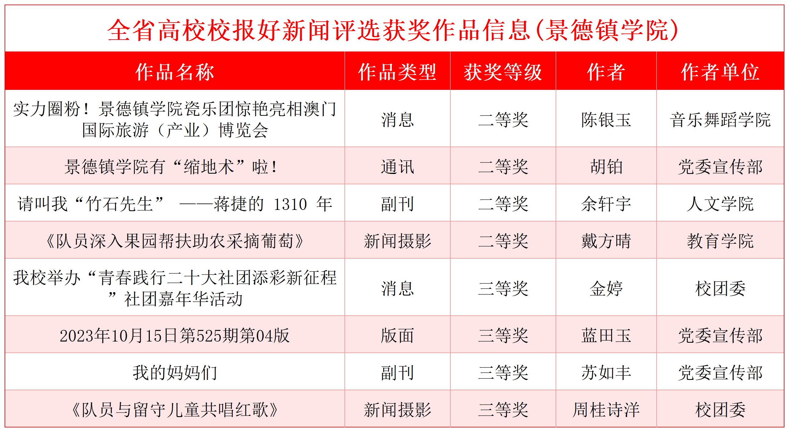 (本网讯:刘欢欢)经省委教育工委、省教育厅批准同意,江西省高校校报研究会组织开展的全省高校校报好新闻评选活动于2024年12月31日公布了评选结果,我校选送的新闻作品在全省高校报送的作品中脱颖而出,有8项作品获奖,...