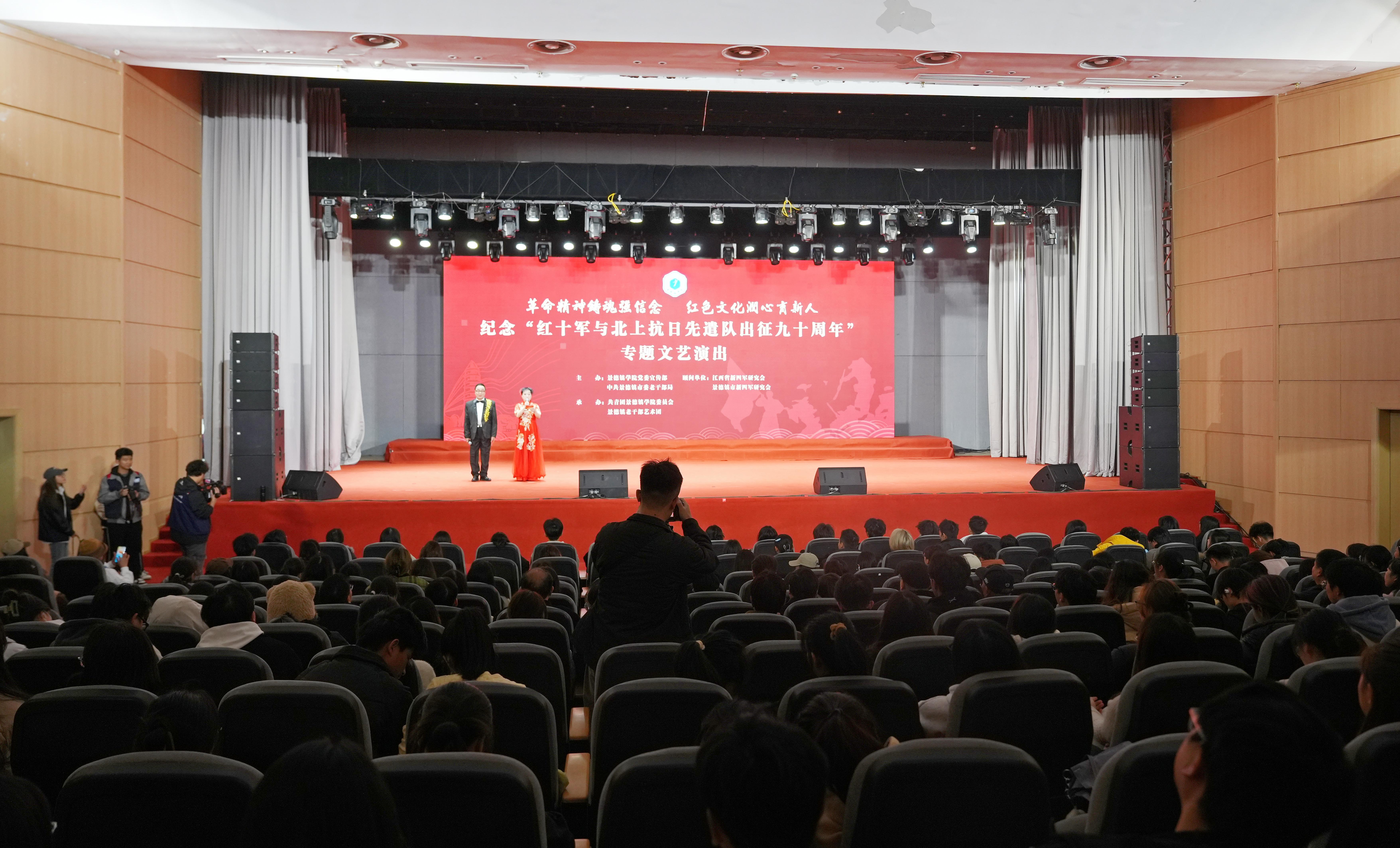 (本网讯:文|李婷婷/图|邱嘉融、刘丽、童炜轶)革命精神铸魂强信念,红色文化润心育新人。为纪念红十军与北上抗日先遣队出征90周年,激发广大师生的爱国热情和奋斗精神,丰富思政教育的内涵和形式。11月29日下午,景德镇学院和中共景德镇市委老干部局联合举办了纪念“红十军与北上抗日先遣队出征九十周年”专题文艺演出。学校音乐厅座无虚席,演出现场掌声如潮,市老干部艺术团的艺术家们与学校师生团队联袂精彩演出,带领大家共同重温峥嵘岁月,赓续红色血脉,以“艺术+思政”的方式让师生沉浸式体验了一堂鲜活生动的“大思政课”。校领导、市老领导老同志及市委组织部、市委宣传部、市老干局相关负责人和400百余师生共同观看了演出。