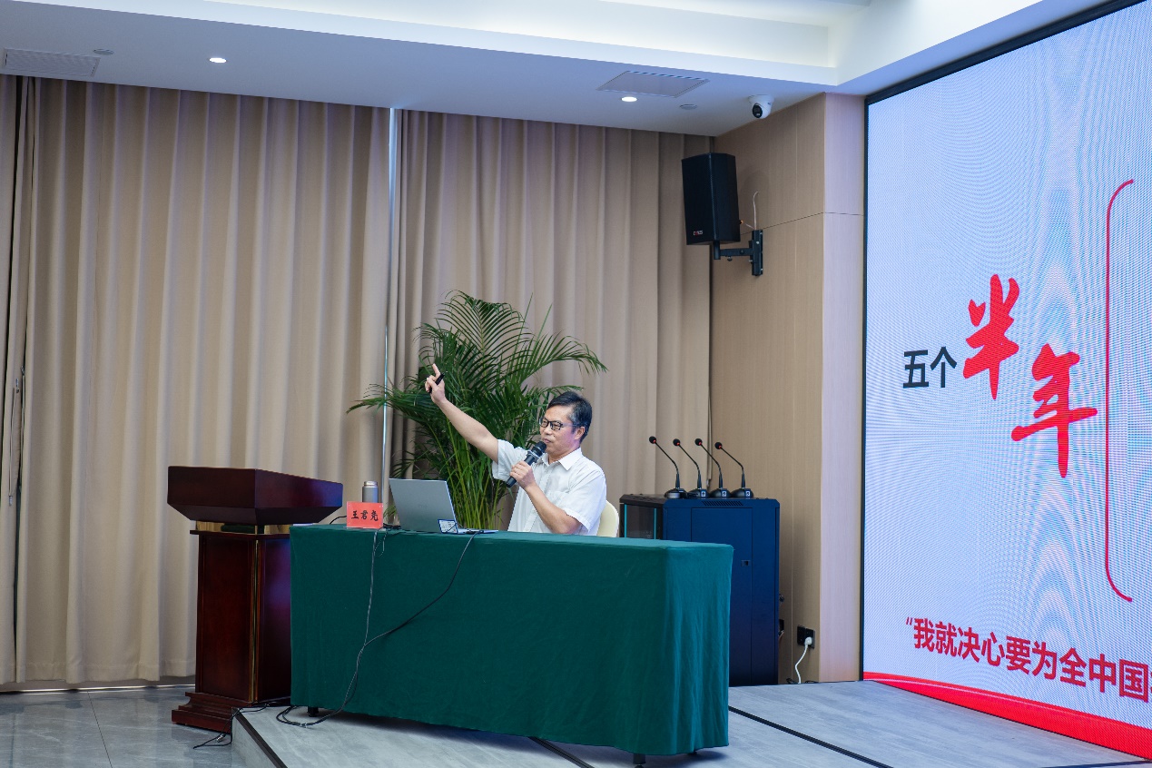 春秋数易,初心如磐石。韶山见证了毛泽东同志年少立志、探索真理、革命实践的成长足迹,也吸引了无数后人寻根问源的目光。在韶山市红色教育培训基地,中共韶山市委党校原常务副校长王君尧为学员们带来一堂凝心铸魂的思政育人大课《学习领袖风范,不忘初心使命》。来韶山先知韶山,王君尧以韶山特殊的地理位置为引,结合“六年孔夫子”“五个半年”“白了一根头发”等毛泽东同志的生平故事,动情地讲述了毛泽东同志“信仰坚定、理想崇高;意志坚强、敢于斗争;勤奋好学、务实重行;心系人民、艰苦奋斗;虚怀若谷,胸怀天下”的优良品格。“孩儿立志出乡关,学不成名誓不还……”报告厅书声琅琅、气氛热烈。一句“传承是最好的纪念,发展是最好的传承”为本堂思政课课堂教学落下最美的注脚,大家深刻意识到:走进伟人故里、叩问初心使命,绝不是一句简单口号或形式纪念活动,而是永远植根于内心的精神追求和实际行动。