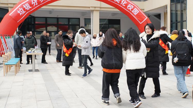 校园垃圾分类倡议以“垃圾少一点,负担小一点,生活美一点”为宗旨,从培养垃圾分类意识、自主学习分类、积极参与宣传工作和践行低碳节约四个方面指导如何做好生活垃圾减量分类。活动期间,工作人员向师生分发垃圾分类宣传手册和宣传单,为同学们详细讲解垃圾分类减量的意义。