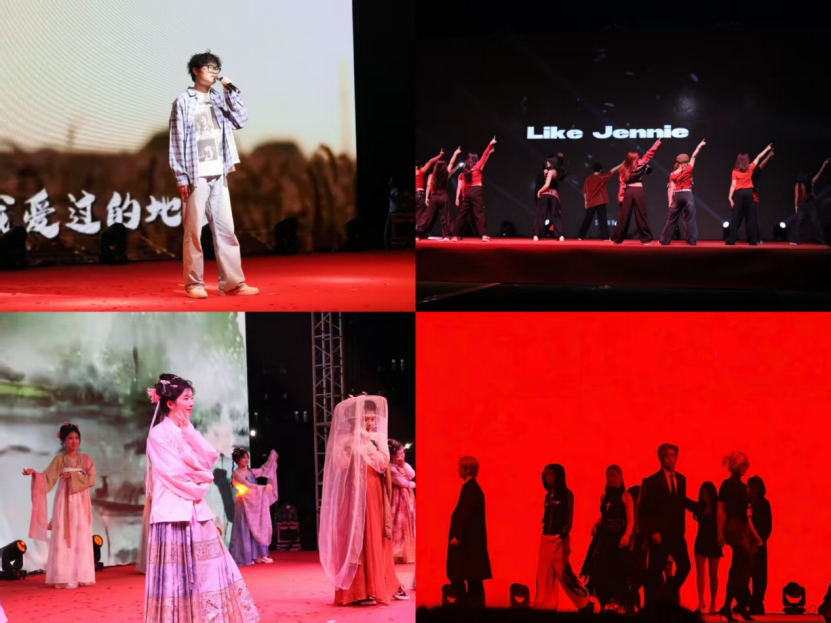 晚会汇聚数十个精品节目,涵盖国风走秀、流行歌舞、创意表演等多元形式。有清澈和声抚慰乡愁,歌声随晚风轻漾;街舞社用极具张力的舞姿引爆全场,鼓点与欢呼声共振;特别设计的“new beginning”走秀,演绎对新生活的向往,展现我校学子昂扬向上的精神风貌。这场精心筹备的视听盛宴并非简单的节目串联,而是承载着文化浸润、价值引领、情感凝聚与素养提升的复合型教育载体。数千名新生齐聚星空之下,以青春热情点燃秋夜,共赴这场精心设计与筹备的“入学必修课”。