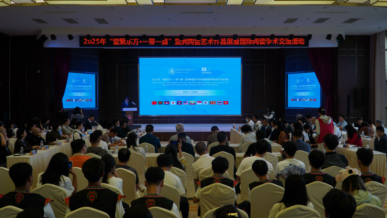 (本网讯:艺术学院)9月27日,2025年“瓷聚东方·一带一路”亚洲陶瓷艺术作品展暨国际陶瓷学术交流活动在云南建水紫陶博物馆隆重举行。校党委副书记、校长熊震宇带领我校代表团出席交流会,党委委员、副校长方漫代表学校在会上做交流发言。此次研讨会以“文化多元交流与共享”为主题,汇聚来自中国、孟加拉国、柬埔寨、日本、韩国、老挝、马来西亚、缅甸、新加坡、斯里兰卡、泰国、越南12个亚洲国家的陶瓷艺术家、学者与行业代表,共同探讨陶瓷文化的传承、创新与全球合作。