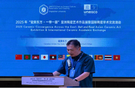 方漫在发言中指出,亚洲陶瓷产区需共同应对工业化与全球化带来的挑战,包括传统工艺的延续、青年人才培养以及创新动力转化。他介绍了景德镇学院在陶瓷教育、研究、国际交流与产学研结合方面的实践,包括与韩国、泰国、美国、俄罗斯等国高校的合作,以及联合国教科文组织“陶瓷文化保护与创新”教席的“保护传承、推动创新和促进合作”三大使命。方漫进一步倡议,在教席框架下建立“国际陶瓷教育与创新共同体”(ICEN),通过世界青年论坛、双年展、设计大赛等项目,整合全球陶瓷资源,打造陶瓷文化的国际话语权。