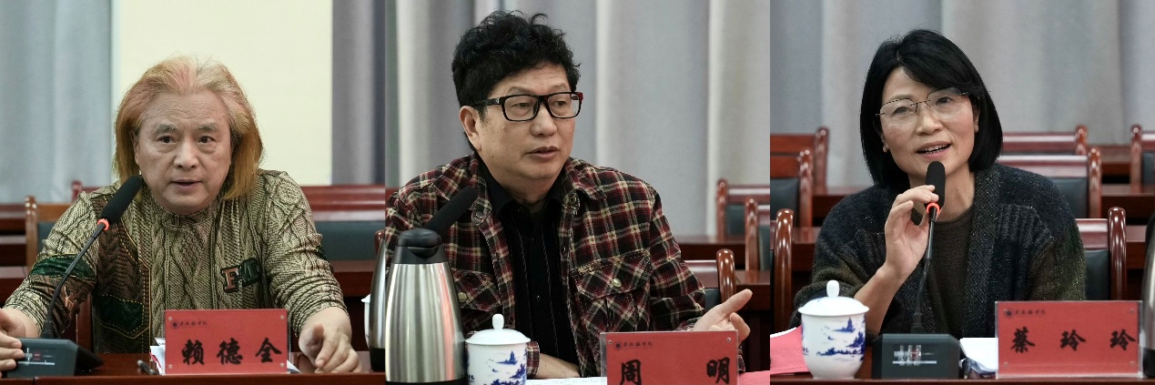 座谈会上,校友们围绕“‘十五五’时期学院长远发展”与“服务地方经济社会建设”两大主题展开深入交流。中国工艺美术大师赖德全结合自身多年艺术实践,强调陶瓷文化要在守正基础上推动创造性转化,建议学院加强传统工艺与现代审美的融合教育。中国陶瓷艺术大师周明从非遗传承角度提出,应构建“校企地”协同机制,推动青花技艺走进课堂、走入产业。中国陶瓷设计艺术大师蔡玲玲则呼吁搭建国际化学术交流平台,提升学院在陶瓷艺术教育领域的引领力。其他与会校友如范敏祺、吴天麟、孙立新等也分别从产教融合、学科建设、人才培养等方面提出建设性意见。校友创业代表,如汪洋、罗恒、陈铁松等,则结合自身在文创产品开发、品牌运营与创新创业方面的实践,为学院拓展产学研合作路径提供了新思路。