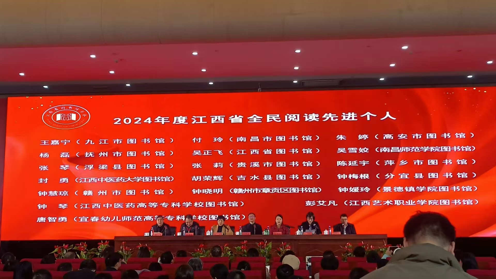 此次年会对2024年度表现突出的先进单位和先进个人进行了表彰。我校图书馆信息服务部主任钟媛玲从全省200多所图书馆的评选中脱颖而出,被评为2024年度江西省全民阅读先进个人。全省本科院校图书馆仅有3人获此殊荣。