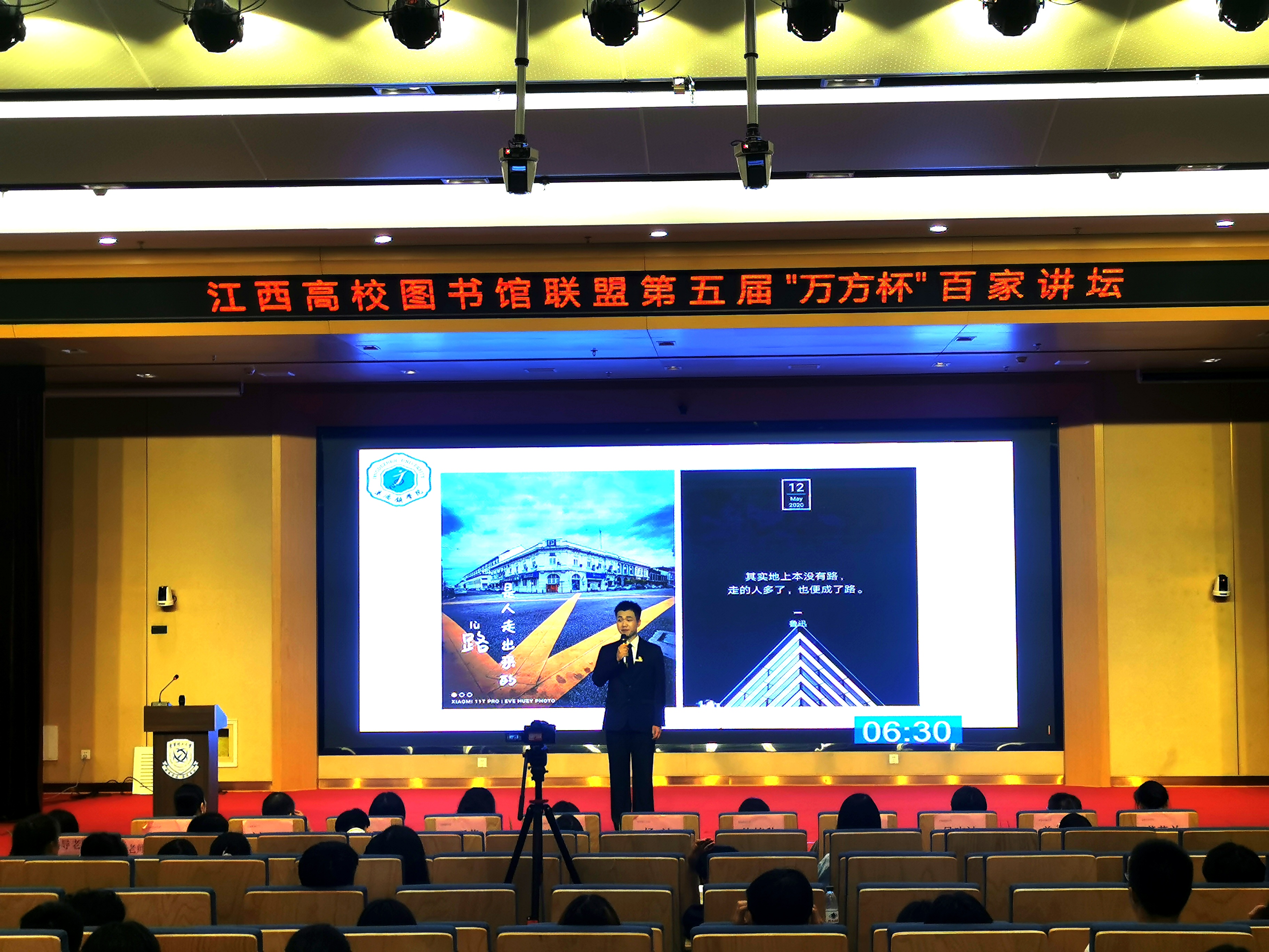 (本网讯:钟媛玲)在刚刚落幕的江西省高校图书馆联盟第五届“万方杯”百家讲坛演讲比赛中,我校图书馆选送的原创演讲作品《心中常有梦想,脚下自有新路》(作者:钟媛玲,演讲人:赵振涛),赢得15位评委的一致好评,荣获一等奖。