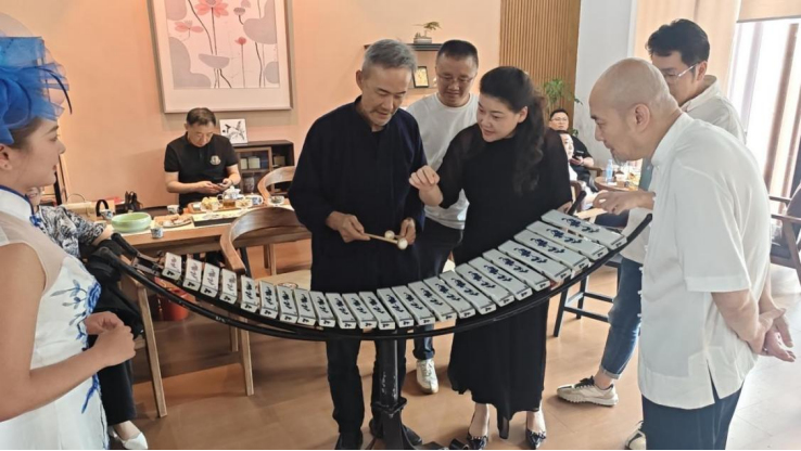 在接待室,瓷笛、瓷二胡、瓷片琴等乐器轮番亮相,各具韵味的音色在近距离演奏中更显动人,获得现场嘉宾的连连赞许。