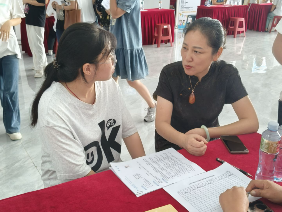 在招聘现场,万文军和彭新顾聚焦学前教育和小学教育等师范专业,围绕当前的师资需求、实习就业体系完善、校地合作机制建设等工作内容展开探讨。双方均表示愿意充分发挥各自资源优势,合作共赢,共同促进地方基础教育事业的不断发展。此外,万文军还密切关注招聘动态,在现场主动与现场求职毕业生交流,耐心解答求职困惑,并结合当前教育行业发展趋势,为学子分析就业方向、提供实用建议,有效缓解了毕业生的求职焦虑。