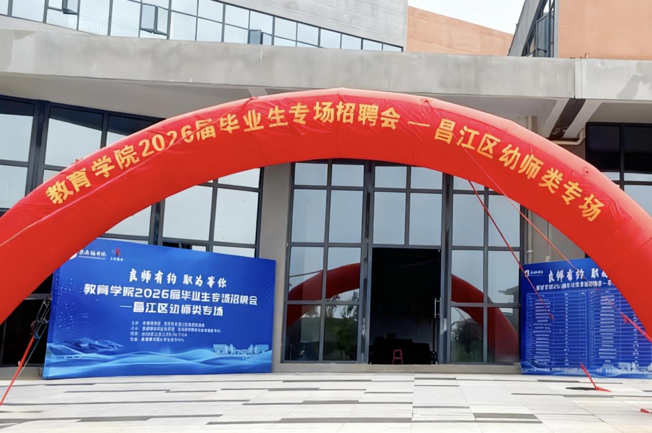 (本网讯:教育学院)为切实做好2026届毕业生就业工作,搭建毕业生与用人单位之间的沟通桥梁,10月15日上午,我校在产教融合大楼成功举办昌江区幼师类专场招聘会。校党委委员、统战部部长万文军,教育学院党委书记李莉,校团委书记、学工部(处)副处长(主持工作)赵新,教育学院党委副书记冯唐锴,昌江区教育体育局副局长彭新顾(分管学前教育工作)到场指导。