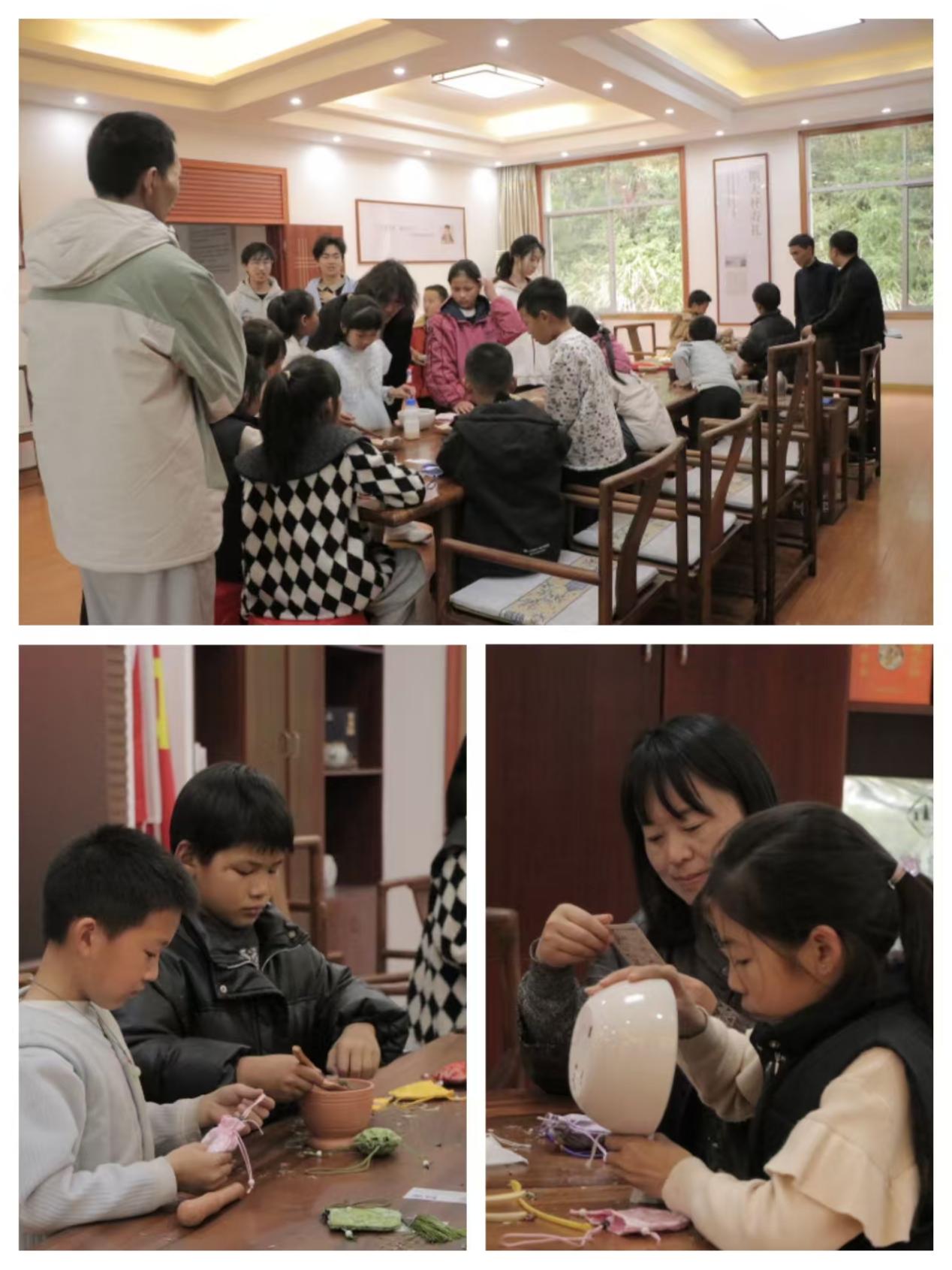 参观结束后,工作人员为孩子们分发艾草、薰衣草、薄荷等天然草本药材与制作工具,结合此前的标本知识,细致讲解各类药材在香囊中的芳香特点与养生功效。在我校师生与志愿者耐心指导下,孩子们自主搭配药材、细心装填、精心缝合装饰,一个个专属中药香囊在指尖诞生。大家在动手实践中感受传统手工艺的独特乐趣,进一步深化了对中医药价值的理解,研学现场洋溢着探索与收获的喜悦氛围。