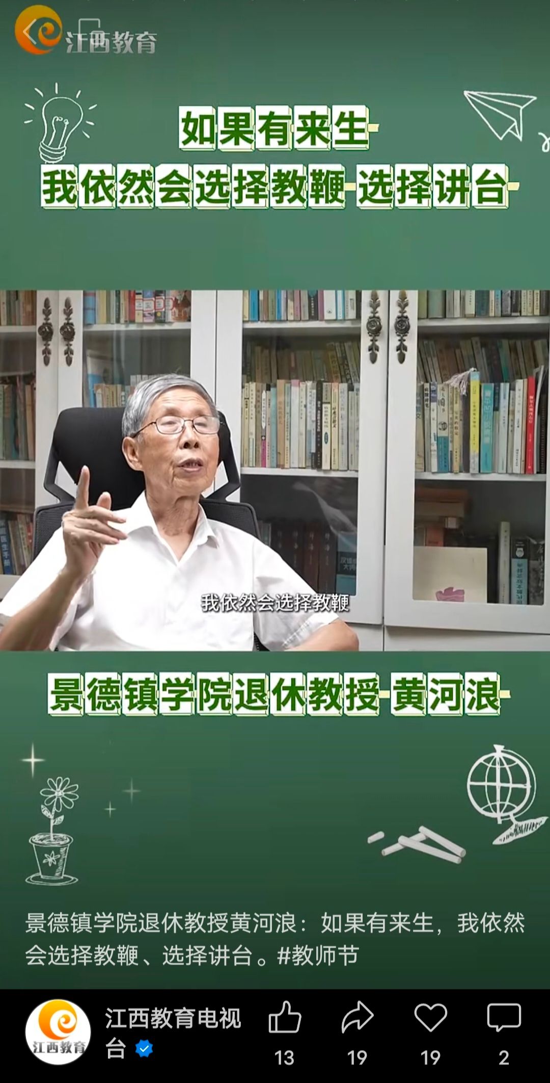 江西教育电视台:景德镇学院退休教授黄河浪——如果有来生,我依然会选择教鞭、选择讲台
