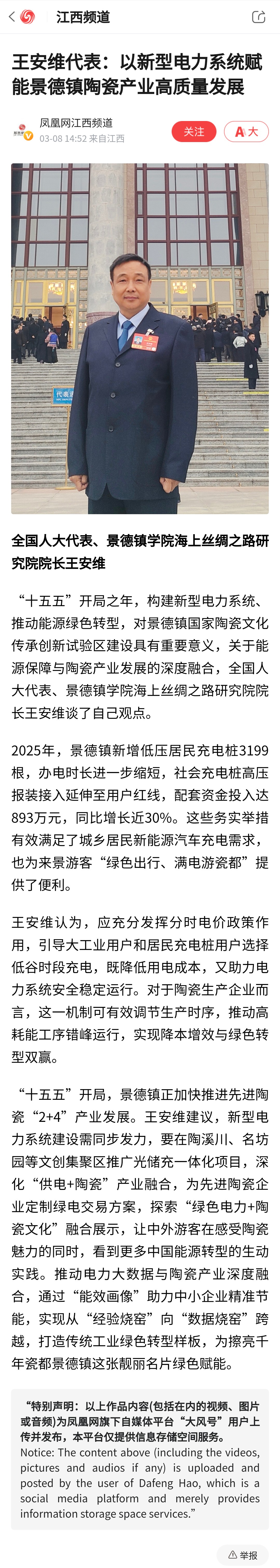 江西频道:景德镇学院王安维——以新型电力系统赋能景德镇陶瓷产业高质量发展